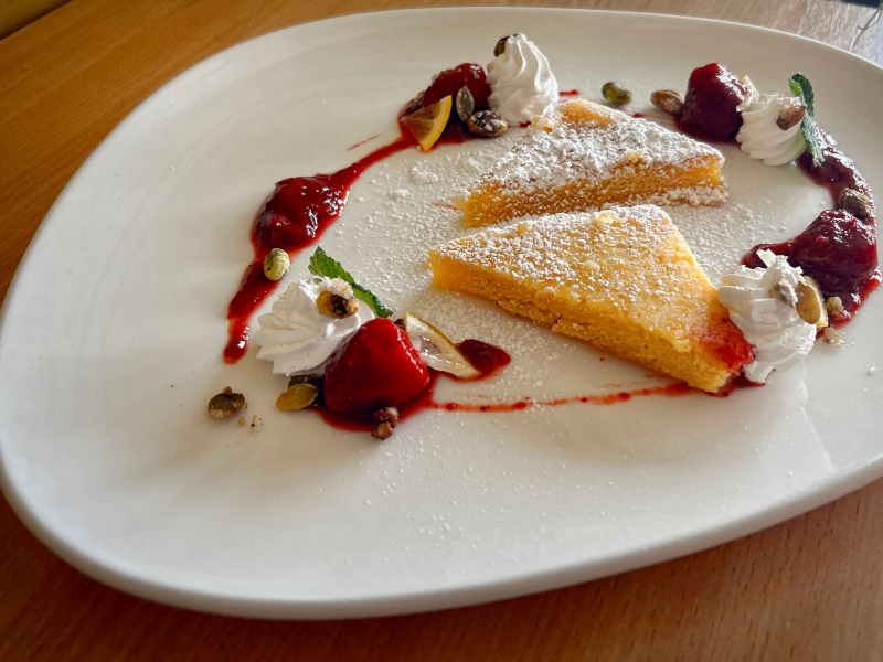 - V menší, klidnější místnosti, která slouží také jako prostor pro polopenzi, si 24 našich hostů může vychutnat naše speciality.